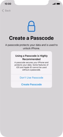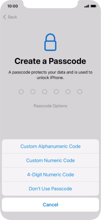 Follow the instructions on the screen to turn on use of phone lock code or press Don't Use Passcode.