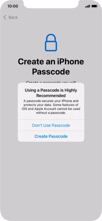 Follow the instructions on the screen to turn on use of phone lock code or press Don't Use Passcode.