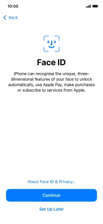 Follow the instructions on the screen to turn on use of Face ID or press Set Up Later.