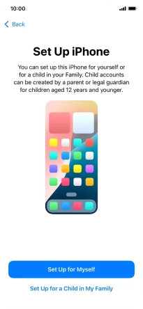 If your phone will be used by a child below the age of 13, follow the instructions on the screen to set up an Apple ID for the child.