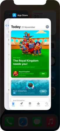 Slide your finger slowly upwards starting from the bottom of the screen until the list of running applications is displayed.