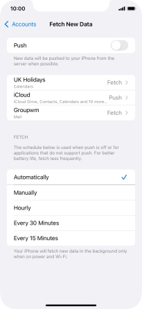 Press the required email account and follow the instructions on the screen to select settings for the specific account.