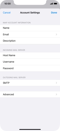Press Host Name and key in the name of your email provider's outgoing server. Please note that if you can't send email messages when using your email provider's outgoing server, key in smtp.vodafone.net.au (Vodafone's outgoing server).