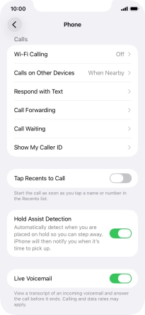 Press the indicator next to "Call Waiting" to turn the function on or off.