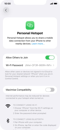 5. Establish connection to personal hotspot from another device