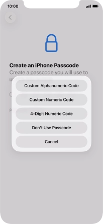 Follow the instructions on the screen to turn on use of phone lock code or press Don't Use Passcode.