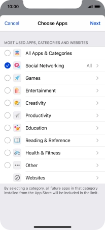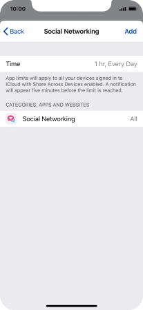 Press the add icon next to the required app to add it to the list of allowed apps during Downtime.