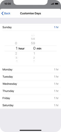 Press the indicator next to "Downtime" and follow the instructions on the screen to select Downtime period.