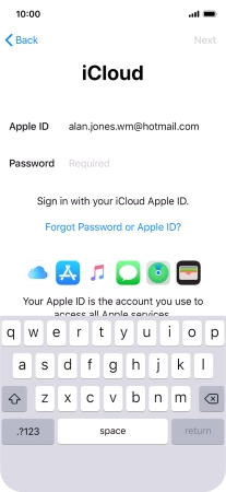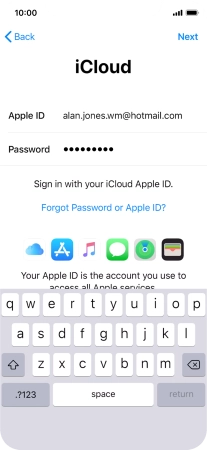 Press the field next to "Apple ID" and key in the username for your Apple ID.