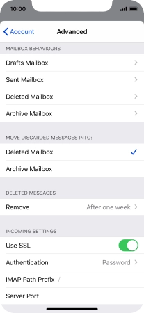 Press Password and key in the password for your email account. Please note that if you're using Vodafone's outgoing server, leave the password field empty.