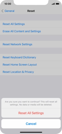 Press Reset All Settings. Wait a moment while the factory default settings are restored. Follow the instructions on the screen to set up your phone and prepare it for use.