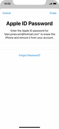 Key in the password for your Apple ID and press Erase. Wait a moment while the factory default settings are restored. Follow the instructions on the screen to set up your phone and prepare it for use.