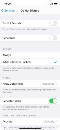 Press the required setting to select which contacts can call you even though Do Not Disturb is turned on.