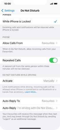 7. Select settings for Do Not Disturb While Driving
