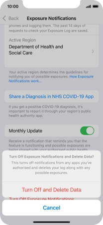 Press Turn Off Exposure Notifications.