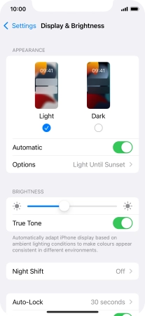 If you turn on the function, press Options and follow the instructions on the screen to select the required period of time for Dark Mode.