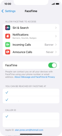 Press the required setting below "YOU CAN BE REACHED BY FACETIME AT".