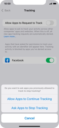 Press the indicator next to "Allow Apps to Request to Track" to turn the function on or off.
