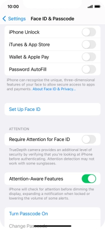 You can use your Face ID to turn off the phone lock code, allow access to apps and authorise payments.
