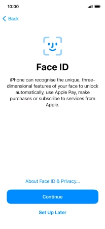 Follow the instructions on the screen to turn on use of Face ID or press Set Up Later.