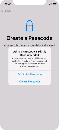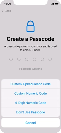 Follow the instructions on the screen to turn on use of phone lock code or press Don't Use Passcode.