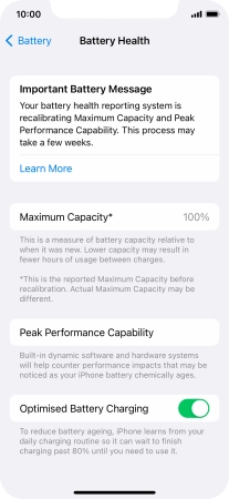 Press the indicator next to "Optimised Battery Charging" to turn the function on or off.