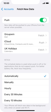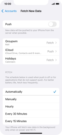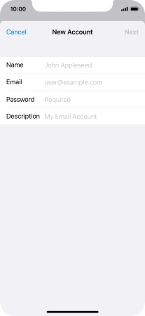 Press the required email account and follow the instructions on the screen to select settings for the specific account.