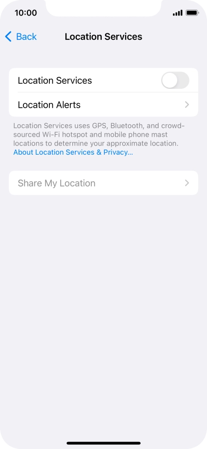 Press the indicator next to "Location Services" to turn the function on or off.