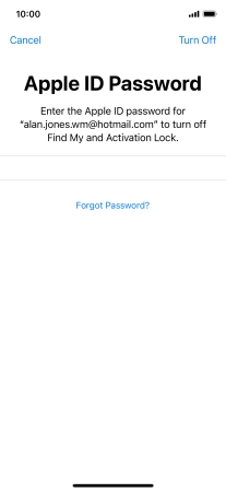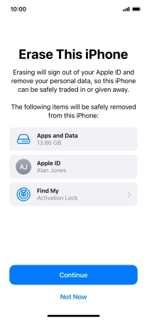 Key in the password for your Apple ID and press Erase iPhone. Wait a moment while the factory default settings are restored. Follow the instructions on the screen to set up your phone and prepare it for use.