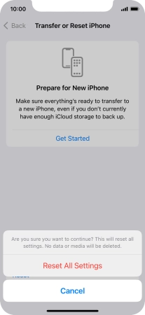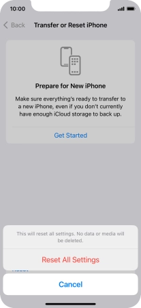 Press Reset All Settings. Wait a moment while the factory default settings are restored. Follow the instructions on the screen to set up your phone and prepare it for use.