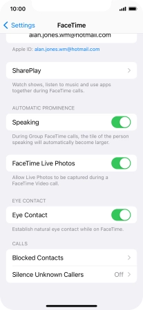 Press the required setting below "YOU CAN BE REACHED BY FACETIME AT".