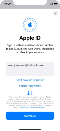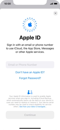 If you don t have an Apple ID, press Don't have an Apple ID? and follow the instructions on the screen to create an Apple ID.