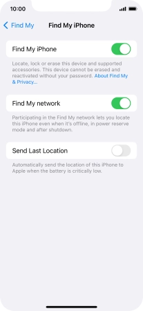 Select settings for Find My iPhone on your Apple iPhone 11 Pro iOS 17