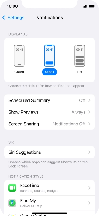 You can turn display of notifications when using SharePlay or Screen Mirroring on or off.