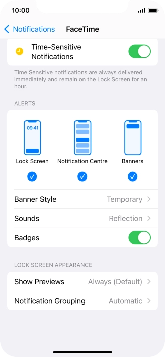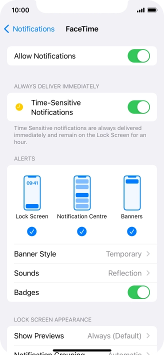 Press the indicator next to "Time-Sensitive Notifications" to turn the function on or off.