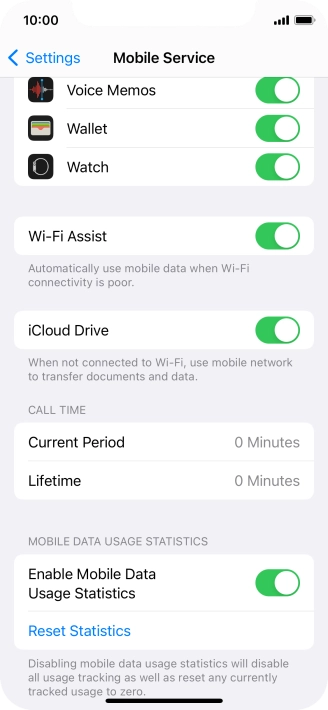 Press the indicator next to "Wi-Fi Assist" to turn the function on or off.