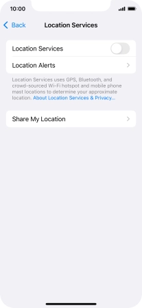 Press the indicator next to "Location Services" to turn the function on or off.
