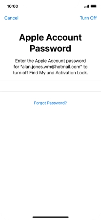 Key in the password for your Apple ID and press Turn Off. Wait a moment while the factory default settings are restored. Follow the instructions on the screen to set up your phone and prepare it for use.
