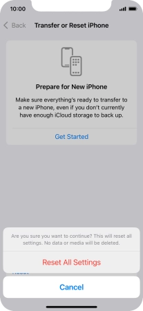 Press Reset All Settings. Wait a moment while the factory default settings are restored. Follow the instructions on the screen to set up your phone and prepare it for use.
