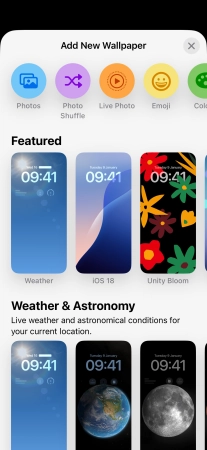 Depending on your choice, you can adjust the appearance of your lock screen background, e.g. by selecting colour filter and depth effect.
