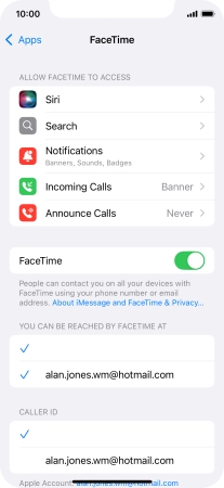Press the required setting below "YOU CAN BE REACHED BY FACETIME AT".