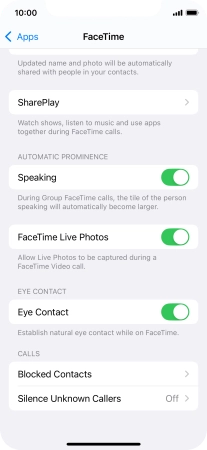 Press the indicator next to "FaceTime" to turn the function on or off.