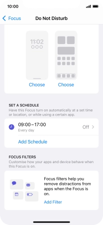 Press Add Schedule and follow the instructions on the screen to select settings for automatic activation of Do Not Disturb.
