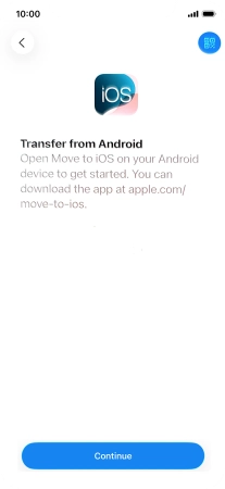 To transfer content to your phone, you need to install the app "Move to iOS" on the Android phone. When the app is installed, press Continue.