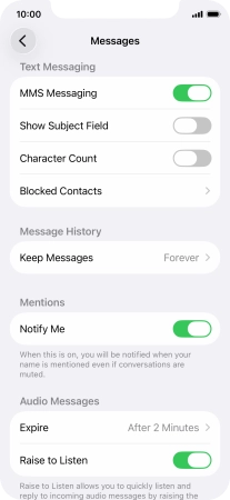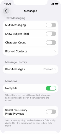 Press the indicator next to "MMS Messaging" to turn on the function.