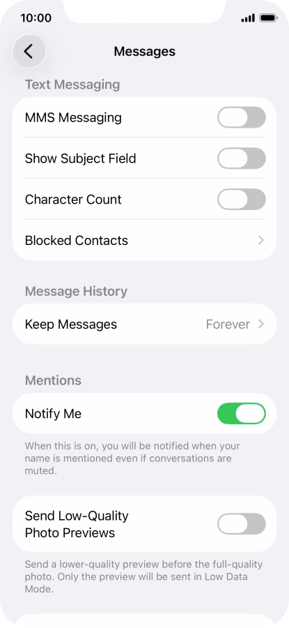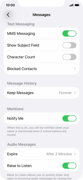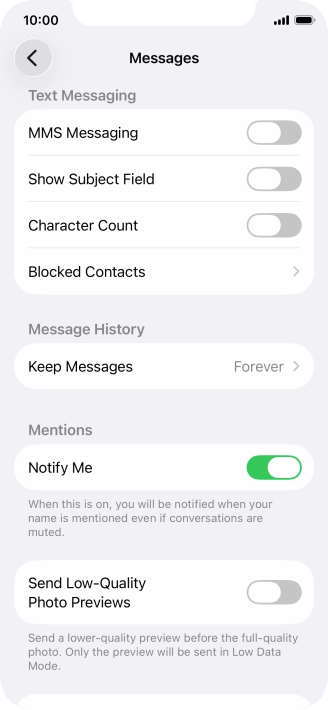 Press the indicator next to "MMS Messaging" to turn on the function.