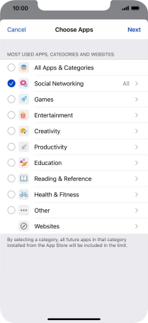 Press the add icon next to the required app to add it to the list of allowed apps during Downtime.