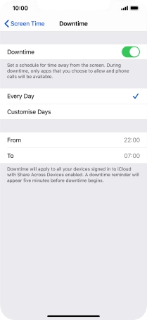 Press the indicator next to "Downtime" and follow the instructions on the screen to select Downtime period.