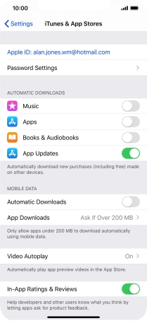 Press the indicator next to "Automatic Downloads" to turn the function on or off.
