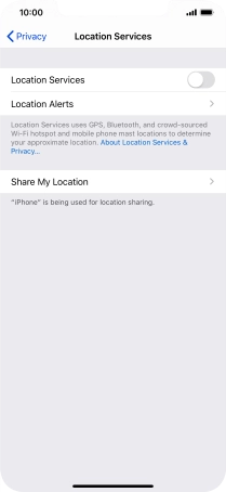 Press the indicator next to "Location Services" to turn the function on or off.